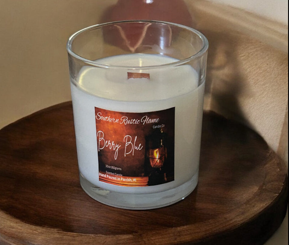 This 10 oz clear straight sided jar is filled with the delicious aroma of fresh blueberries in our berry blue scented candle. Made with eco-friendly coconut apricot wax, all-natural dyes, and fragrance oils. Enjoy a clean-burning, homemade candle that is both environmentally conscious and indulgently fragrant.