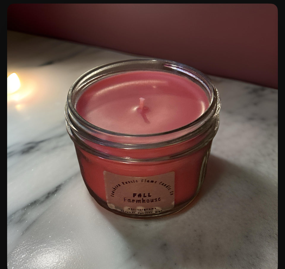 Indulge in the warm, cozy ambiance of our 8 oz Mason Jar candle. Made with a blend of Coconut Apricot wax, our Fall Farmhouse scent will transport you to a rustic autumn setting. Enjoy up to 50 hours of burn time and a clean, long-lasting fragrance. Perfect for adding a touch of comfort to any room or gifting to a loved one with this hand crafted candle.
