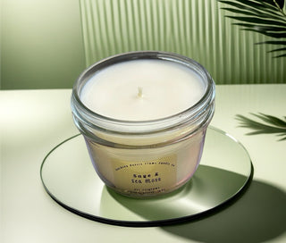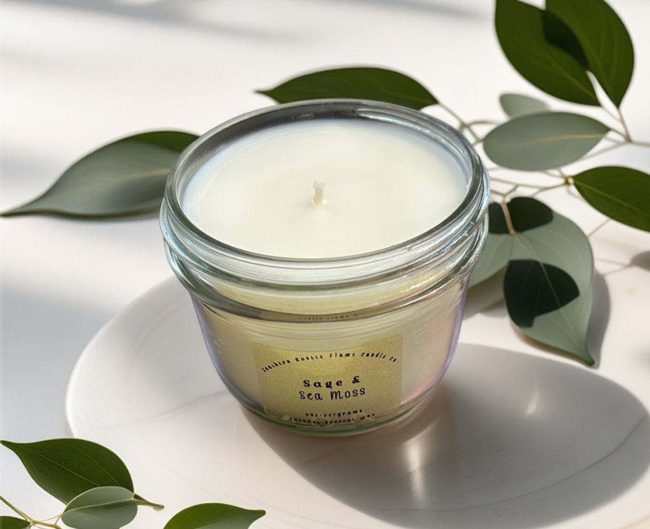 The 8oz Mason Jar candle is expertly crafted with a blend of Coconut Apricot Wax, infused with the refreshing scents of Sage & Sea Moss. Experience the calming and soothing benefits of these natural ingredients as the warm glow of the candle fills the room.