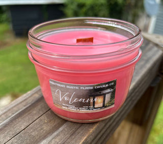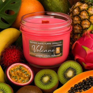 Notes of pineapple ,mango, tropical leafs, and soft driftwood. Made with coconut apricot blended wax and a crackling wood wick. Experience the tropical refreshing soft scent as you unwind after a long day. Relax in a tropical breeze in a red volcanic color.