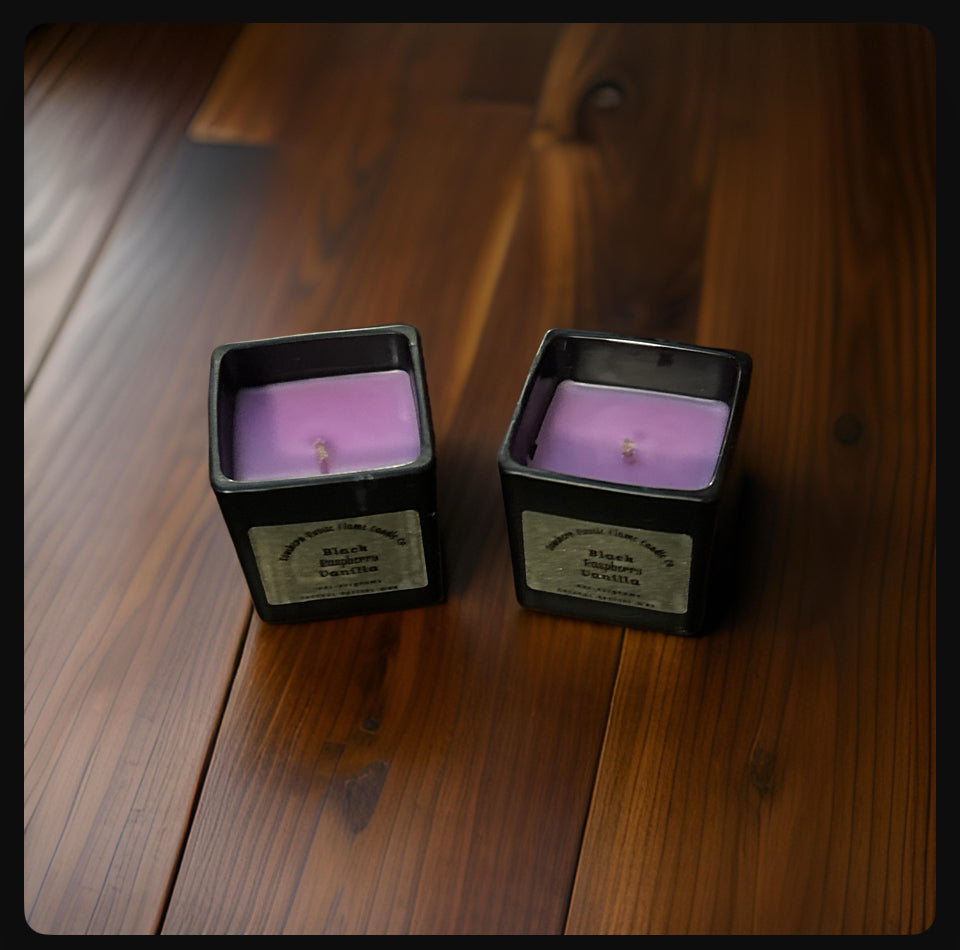 Transform your home into a cozy oasis with our 2 oz Black Square Glass homemade scented candle. The luxurious coconut apricot wax combined with the sweet scent of black raspberry vanilla will create a warm and inviting ambiance. Southern Rustic Flame Candle is Crafted with care, this homemade candle not only adds to your home decor, but also fills the room with a delicious aroma.